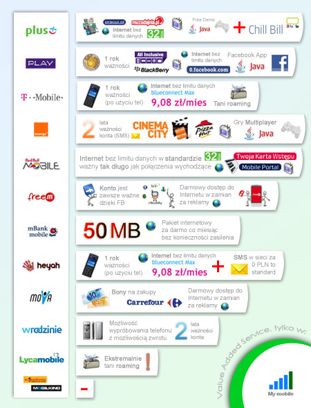 INFOGRAFIKA (odc. 6) wartości dodanych usług sieci Pre-paid według My mobile: