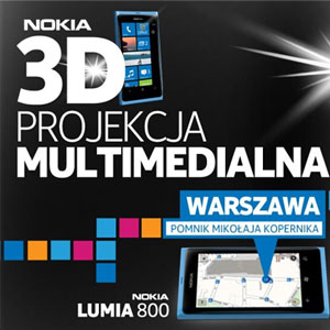 Nie tylko Londyn może się pochwalić ciekawymi akcjami marketingowymi w plenerze jak chociażby Nokia Lumia Live Show. W ostatnią sobotę, 4 lutego 2012 roku w Warszawie mogliśmy oglądać podobne wydarzenie, choć oczywiście na dużo mniejszą skalę. Była to projekcja multimedialna 3D, której celem była promocja Nokii Lumia 800.