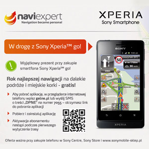NaviExpert ważny przez rok przy zakupie Sony Xperia Go