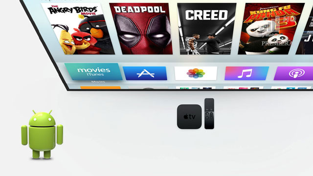 Choć wydaje się to być nieprawdopodobne to tak, da się strumieniować (klonować) obraz z telefonu z Androidem na przystawkę multimedialną Apple TV. Pewnym mankamentem jest jedynie wydobywanie się dźwięku ze smartfonu zamiast z ekranu dużego telewizora w salonie. Jednak najważniejsza funkcja zostaje spełniona. Obraz ostry jak brzytwa emituje się poprawnie z zielonego robota na Apple TV.