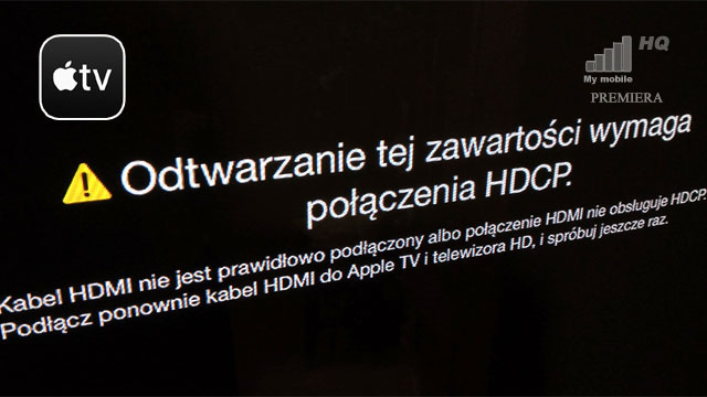 Po kilku chwilach sprawdzenia okazało się, iż wcale nie jest winna aplikacja HBO GO podczas opcji klonowania obrazu dalej na Apple TV. Na ekranie telewizora występował jakiś dziwny komunikat mówiący o tym, że odtwarzanie tej zawartości wymaga połączenia HDCP. Szybki research oraz rozwiązanie bugu zostało znalezione. Wystarczy tylko ponowne uruchomienie urządzenia Apple TV 3rd. Później wszystkie błędy ustały.
